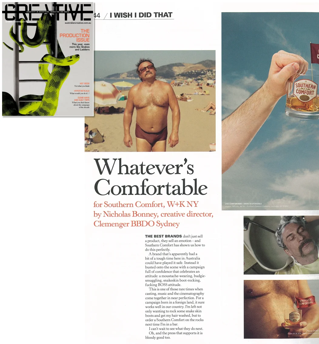 Back in Sydney he then spent 10 years working for big multinational agencies such as M&C Saatchi and Clemenger BBDO as a creative lead on large accounts and seeing his work awarded at all the major creative award shows around the world.
